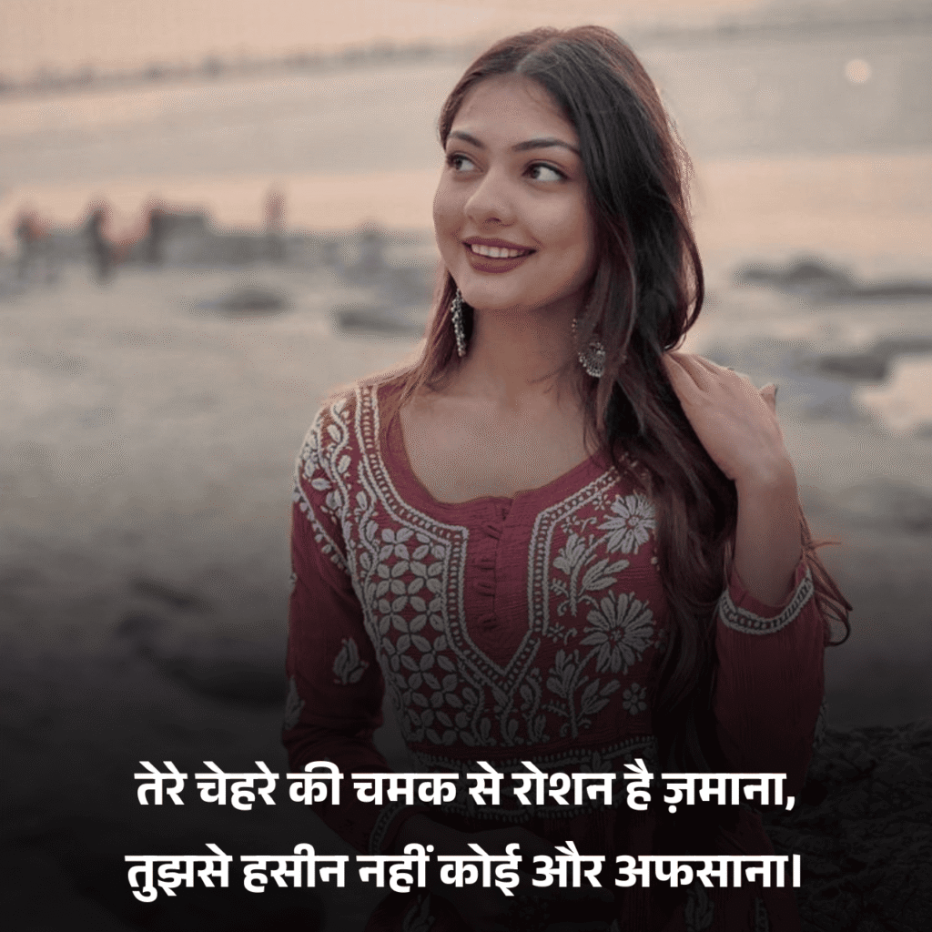 आज के दौर में भी चेहरे की तारीफ शायरी दिलों को जोड़ने और मोहब्बत का इज़हार करने का सबसे खूबसूरत तरीका है। यह शायरी न सिर्फ प्यार जताती है बल्कि सामने वाले को खास भी महसूस कराती है। जब आप किसी की आँखों, मुस्कान या चेहरे की रौनक की तारीफ शेरो-शायरी में करते हैं, तो वो लम्हा और भी यादगार बन जाता है।