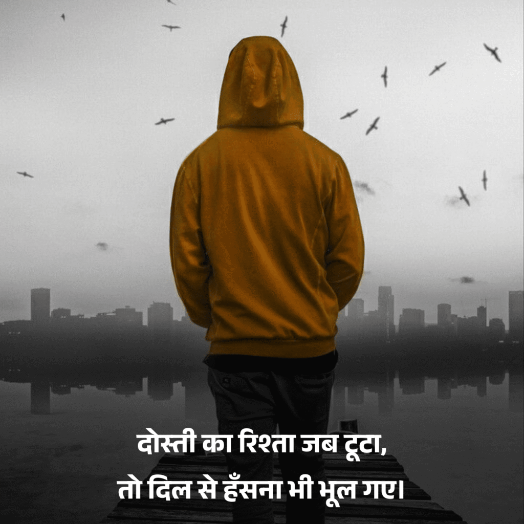 दोस्ती में दिल टूटने वाली शायरी टूटे हुए एहसासों को बयान करती है। जब दोस्त बेवफा हो जाए, जब भरोसा टूट जाए या जब मोहब्बत से भी ज्यादा प्यारी दोस्ती का रिश्ता अधूरा रह जाए, तब यही शायरी दिल का बोझ हल्का करती है और टूटे हुए अरमानों को आवाज़ देती है।
